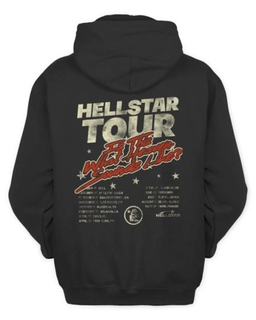 - Hellstar world tour hoodie brings a concert-tour vibe.